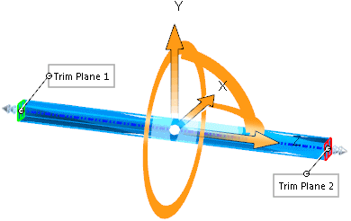 伸展:沿三重軸的Z軸拉伸實體和曲面實體。 指定一距離或使用鼠標左鍵拖動剪裁基準面的邊線。
