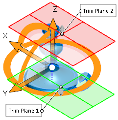 錐削:沿三重軸的Z軸錐削實體和曲面實體。 定位三重軸和剪裁基準面,控制錐削的角度、位置和界限。